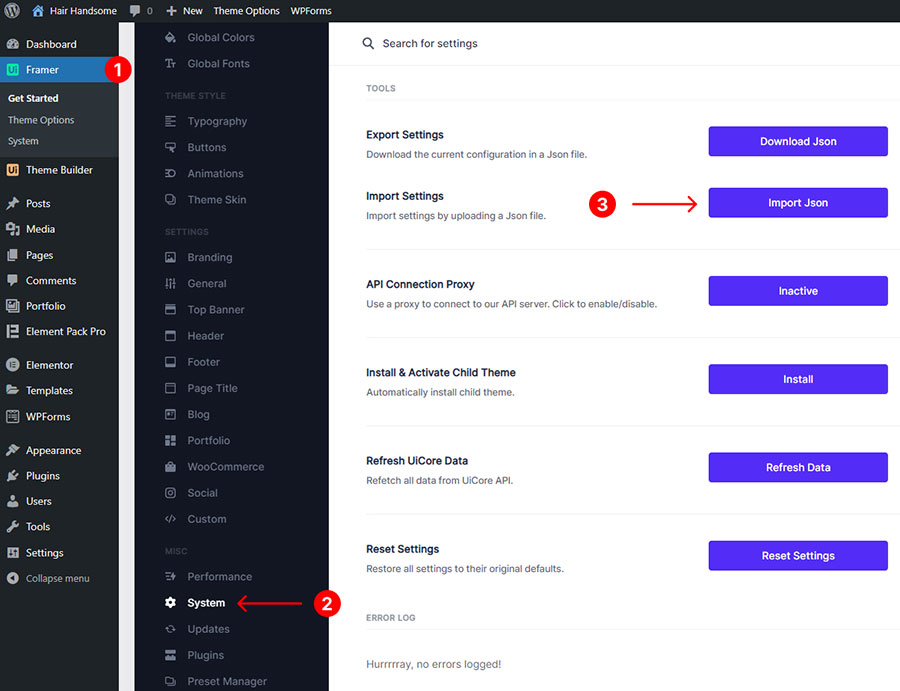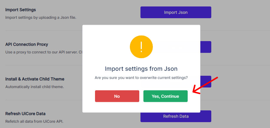 2. Importing theme settings: