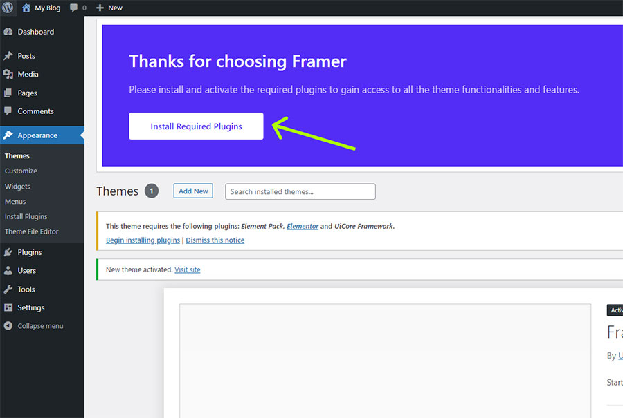Once the theme is installed, please click on Install Required Plugins button.