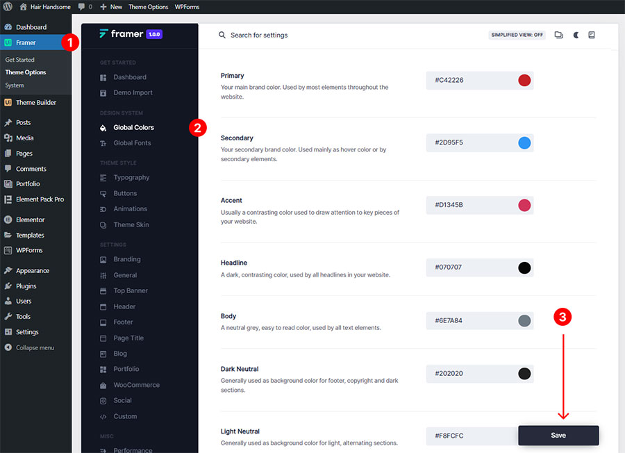 To change the Global color please navigate to Framer -> Global Colors.