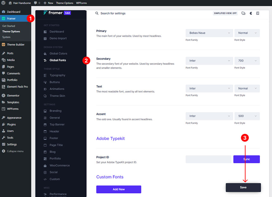 To change the Global font style please navigate to Framer -> Global Fonts.