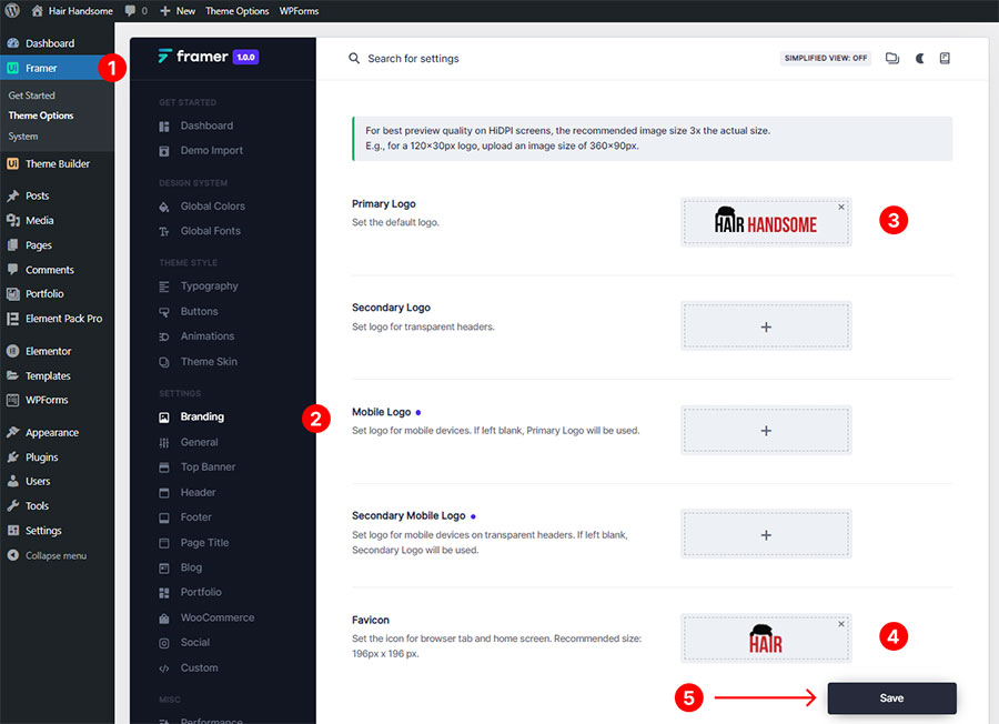 * For best preview quality on HiDPI screens, the recommended image size 3x the actual size. E.g., for a 120x30px logo, upload an image size of 360x90px.