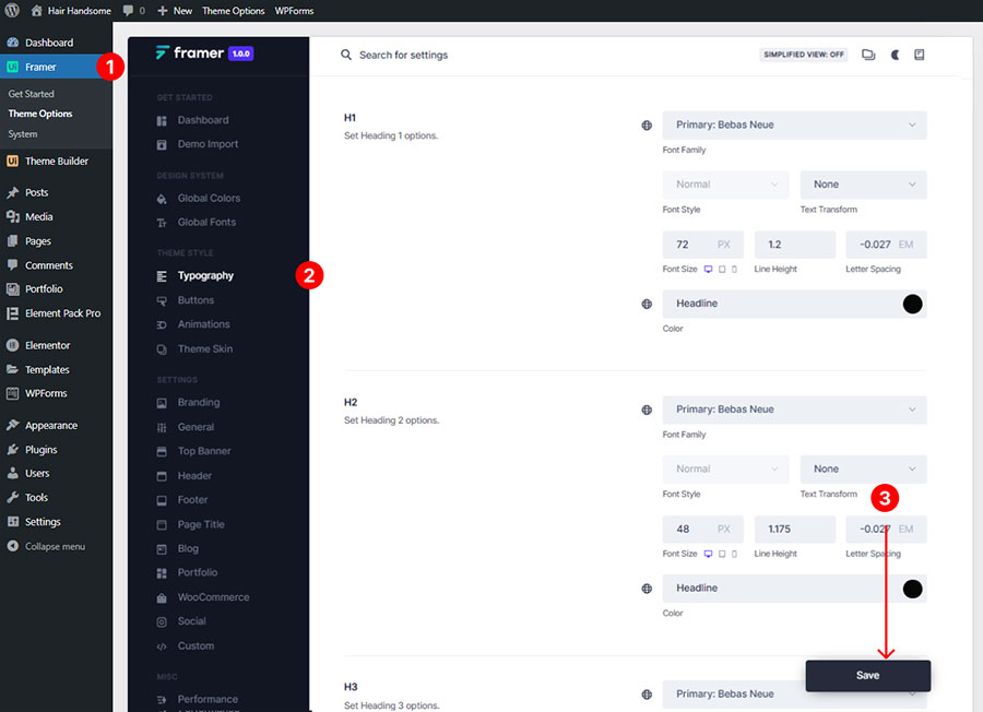 To change the Typography please navigate to Framer -> Typography.