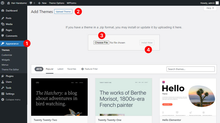 When you are ready to install a theme, you must first upload the theme files and then activate the theme itself. The theme files can be uploaded in two ways: